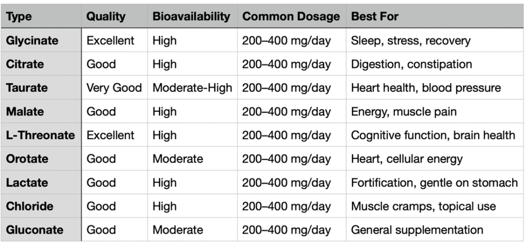 https://drstanfield.com/en-au/blogs/articles/best-worst-forms-magnesium - Medical News Today. “Benefits and Uses of Different Types of Magnesium.” (2025-08-05).